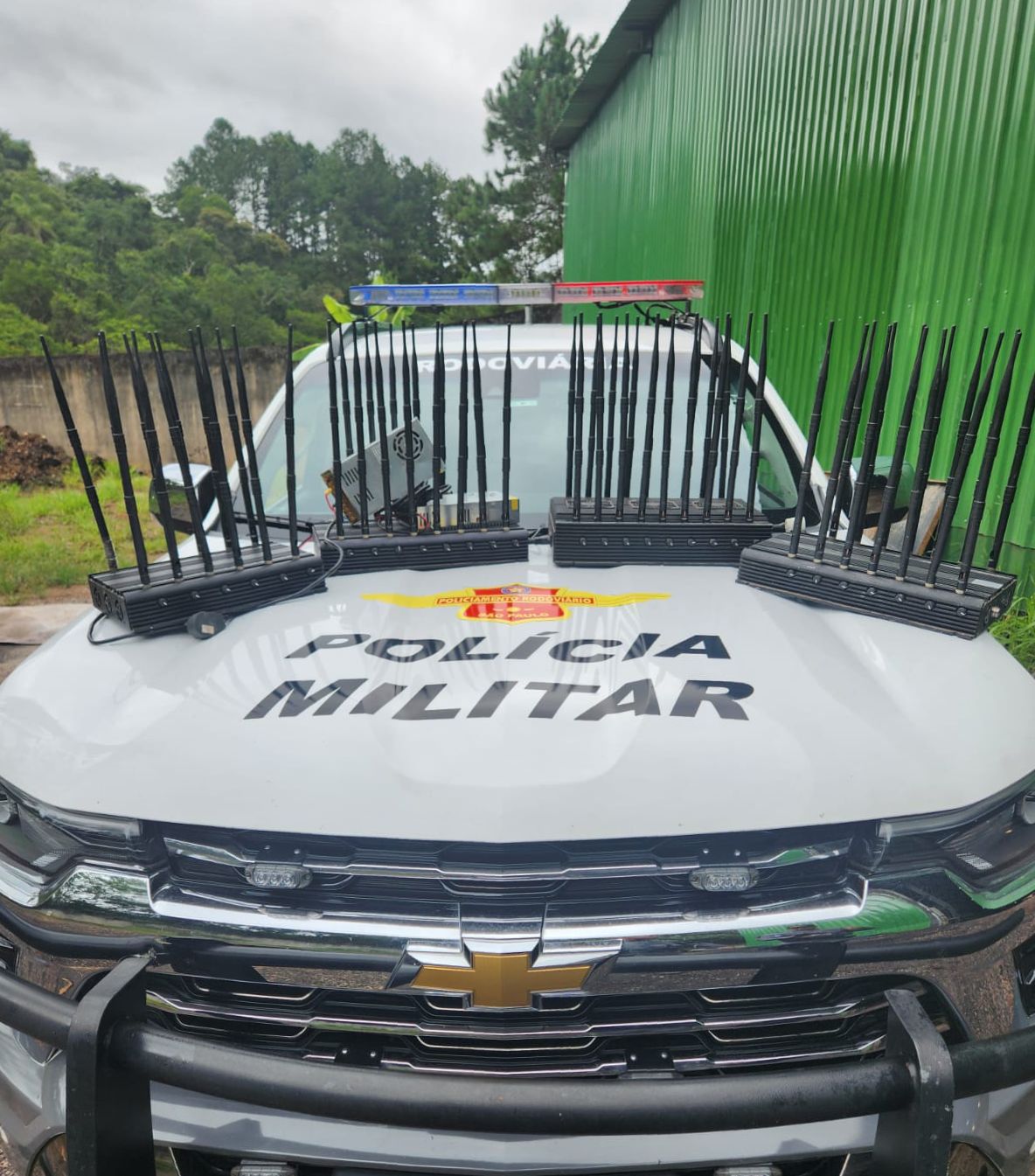 Após um alerta, os policiais localizaram um caminhão de carga sendo desmontado em um galpão de uma chácara. No local, o grupo foi abordado e foram encontrados diversos aparelhos bloqueadores Jammer, placas de veículos e outros objetos.