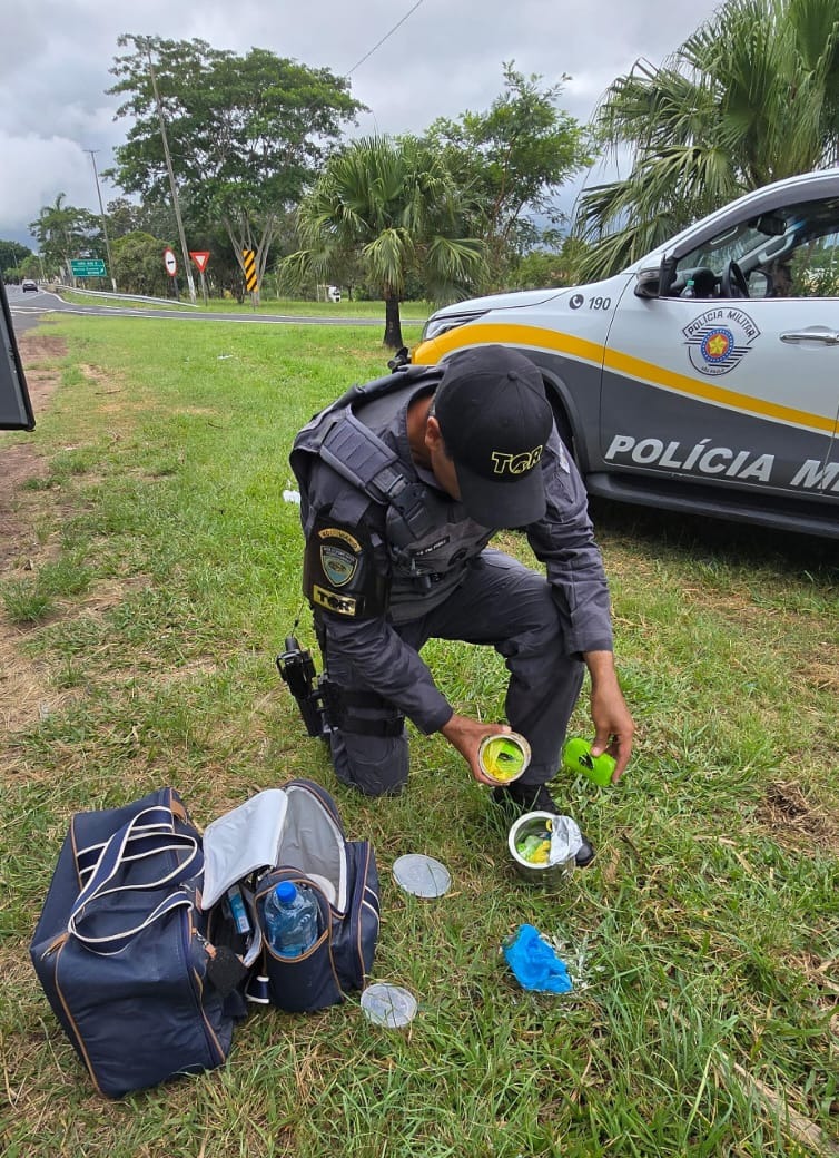 A Força Tática (FT) da Polícia Militar (PM) apreendeu cerca de 1,1 tonelada de drogas na tarde de hoje (1) no Jardim Santa Clara do Lago, em Hortolândia. Após uma denúncia, os policiais interceptaram na Rua Cuba, um Fiat Strada. Durante a abordagem, o motorista chegou a quebrar um celular e durante averiguação, foram encontrados tijolos de maconha e uma quantidade em dinheiro. O homem apontou onde pegou a droga e indicou uma residência nas proximidades. Na sequência, os militares entraram no imóvel e um segundo homem foi detido. No local, foi encontrada uma grande quantidade de entorpecentes. A PM divulgou a apreensão de 890 kg de maconha, 69 kg de cocaína, 134 kg de crack e R$5.033,00. A dupla foi encaminhada para uma unidade da Polícia Civil (PC) e o delegado de plantão determinou o flagrante. Imagem: PM