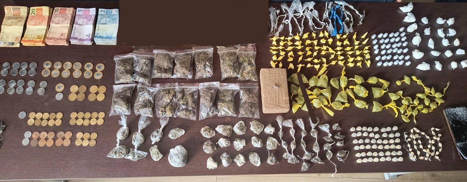 Na tarde desta sexta-feira (13) na Estrada do Barreirinho, a sub inspetora Juliana e o patrulheiro Ferreira, abordaram um adolescente, e com o apoio da cachorra Tandera, foram encontrados 16 porções de maconha e 5 pinos com cocaína.