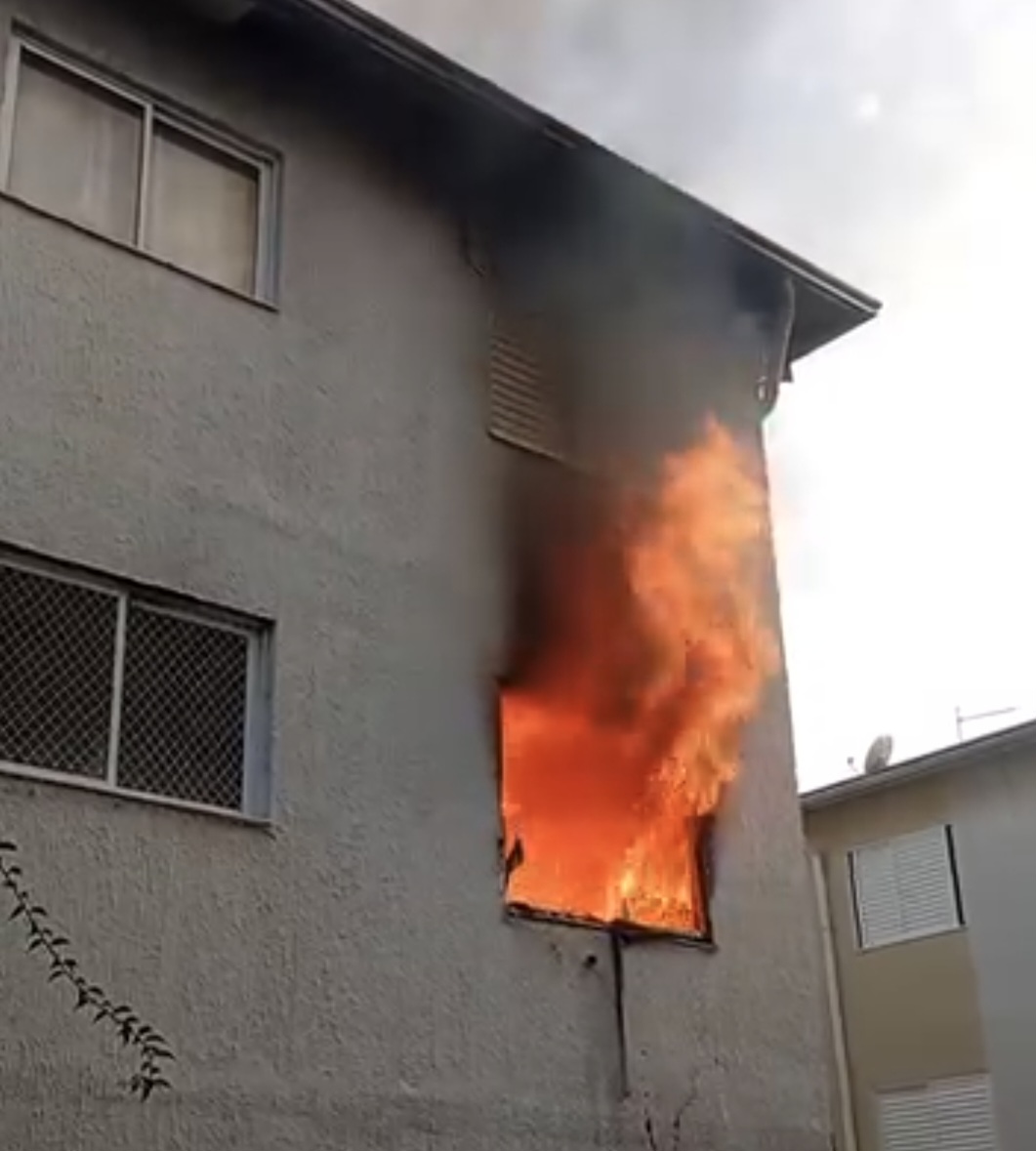 De acordo com o Corpo de Bombeiros, o incêndio começou em um dos quartos e se espalhou por todo o imóvel localizado no 2º andar. Duas equipes combateram as chamas e um morador foi retirado em segurança.