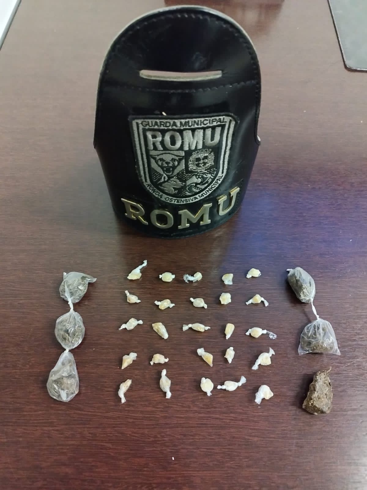 Já na noite desta quinta-feira, na Rua Antônio Fugolin, na região da Praia Azul, a equipe da Ronda Ostensiva Municipal (Romu) Canil, A. Fernandes, César e J, Marcio, abordou um homem de 45 anos e, com o auxílio do cão Draco, foram localizadas 25 pedras de crack e 6 porções de maconha. O caso foi comunicado na PCA e o suspeito foi liberado.