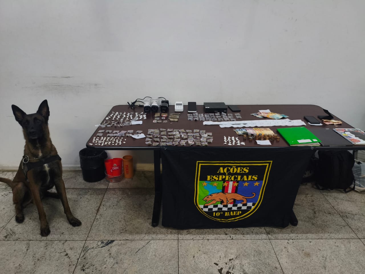 Os militares da ROCAM (Ronda Ostensiva Com Motocicletas): Cbs: Oswaldo, Teixeira; Sds: Jandir e Eduardo, abordaram os infratores com 9 porções de maconha e R$ 129,00.