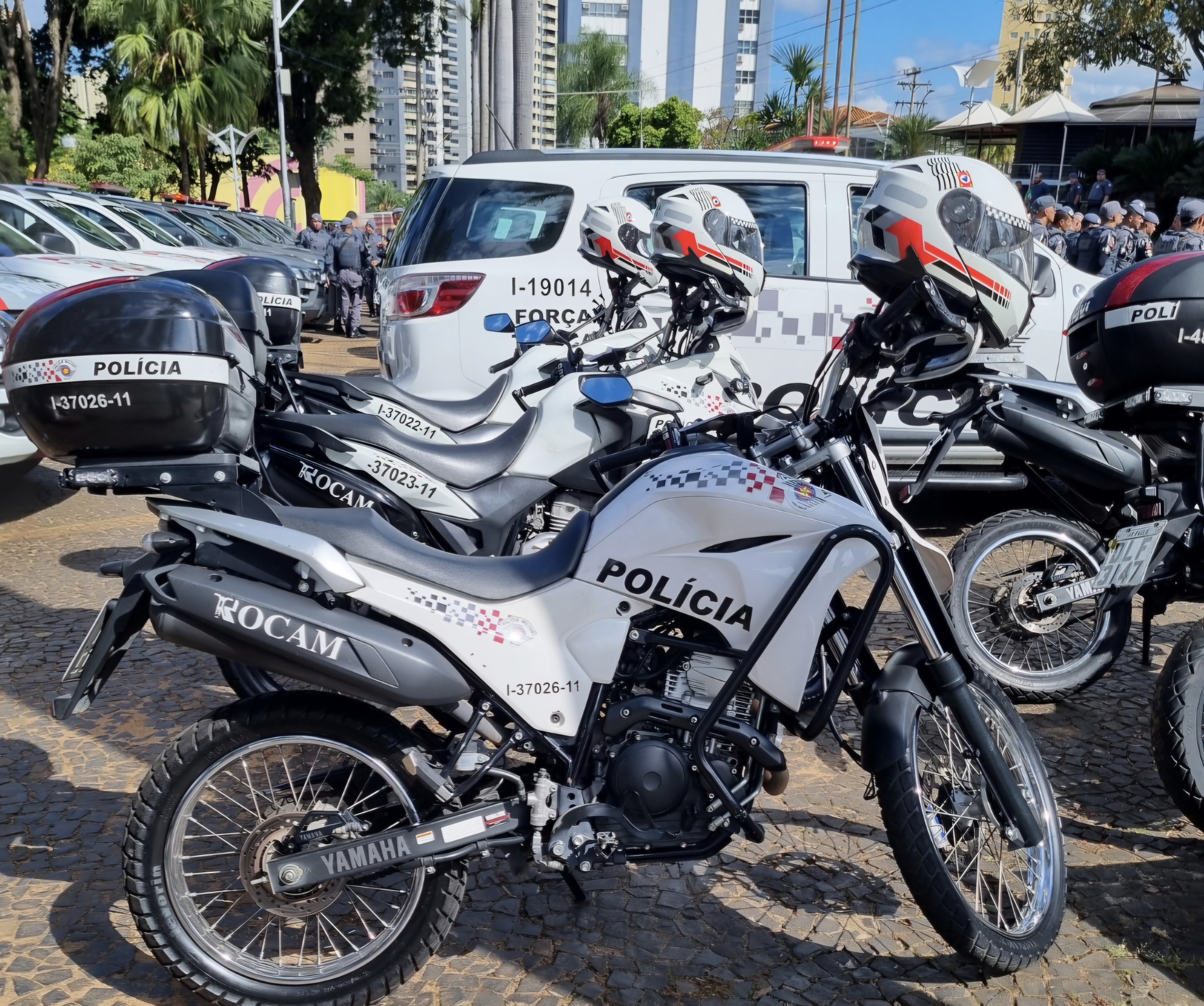 Equipe da Força – Tática do 19 BPMI, Cb José Luiz, Sds: Hott e Prado, tentou abordar dois suspeitos em uma motocicleta, mas o condutor não obedeceu a ordem de parada. Após o acompanhamento, os suspeitos foram detidos na rua Venezuela, no bairro Frezarin.