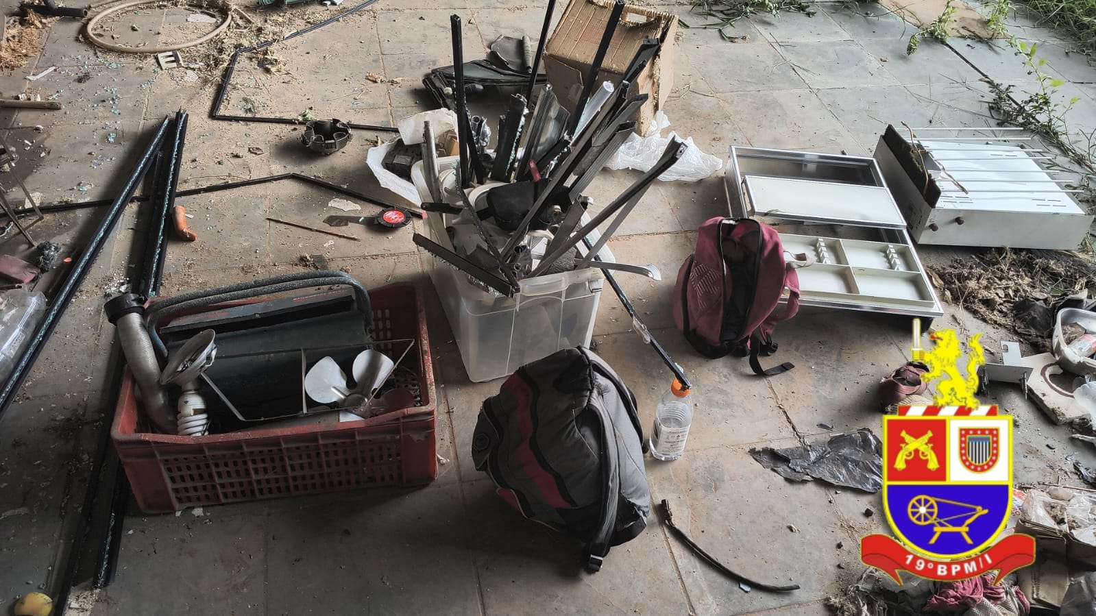 Os criminosos tentaram fazer um buraco na parede, mas quando observaram um vigilante do comércio, desistiram da ação e saíram em dois carros. A Polícia Militar, abordou quatro homens em um Fiat Uno 1991, e o quinto suspeito em um Kadett ano 1993. Todos são moradores em Sumaré (SP), e foram autuados em flagrante por associação criminosa e tentativa de furto. Ferramentas foram deixadas no local da tentativa arrombamento. Imagem: 19 BPMI