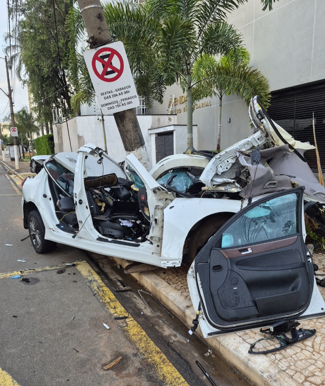De acordo com a PolÃcia Militar (PM), por volta das 22h, o homem, de 23 anos, conduzia um Hyundai/Genesis, no sentido Parque Ecológico, quando por motivos ainda desconhecidos, perdeu o controle da direção e chocou-se contra um poste na frente do Centro Empresarial Avenida Oficce.