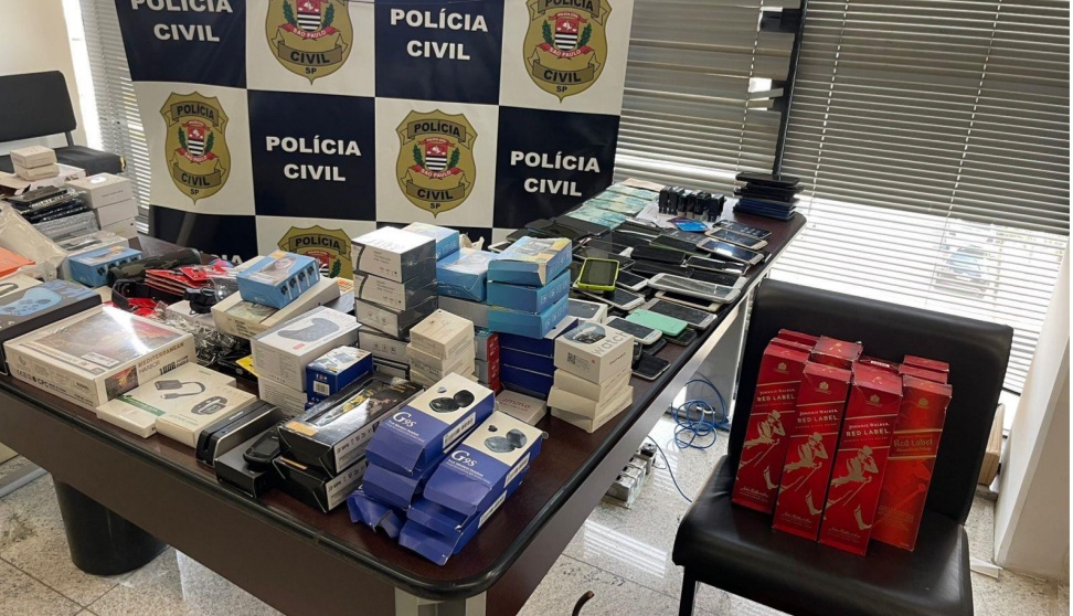 Um mandado de busca e apreensão foi cumprido em uma residência, no Jardim São Paulo. Durante a ação, os agentes detiveram um homem e foram localizados 123 produtos eletrônicos, 75 celulares, 22 litros de whisky, 8 cartões bancários, 7 notebooks, 6 carimbos médicos, 2 atestados médicos, 2 máquinas de cartão, 8 aves silvestres e R$ 7,1 mil.