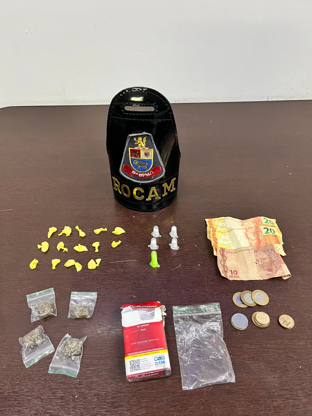 A ocorrência foi apresentada na Central de Polícia Judiciária (CPJ), e a vítima do assalto foi reconheceu o criminoso. O acusado foi autuado em flagrante, e um celular roubado foi recuperado. Imagem: PM